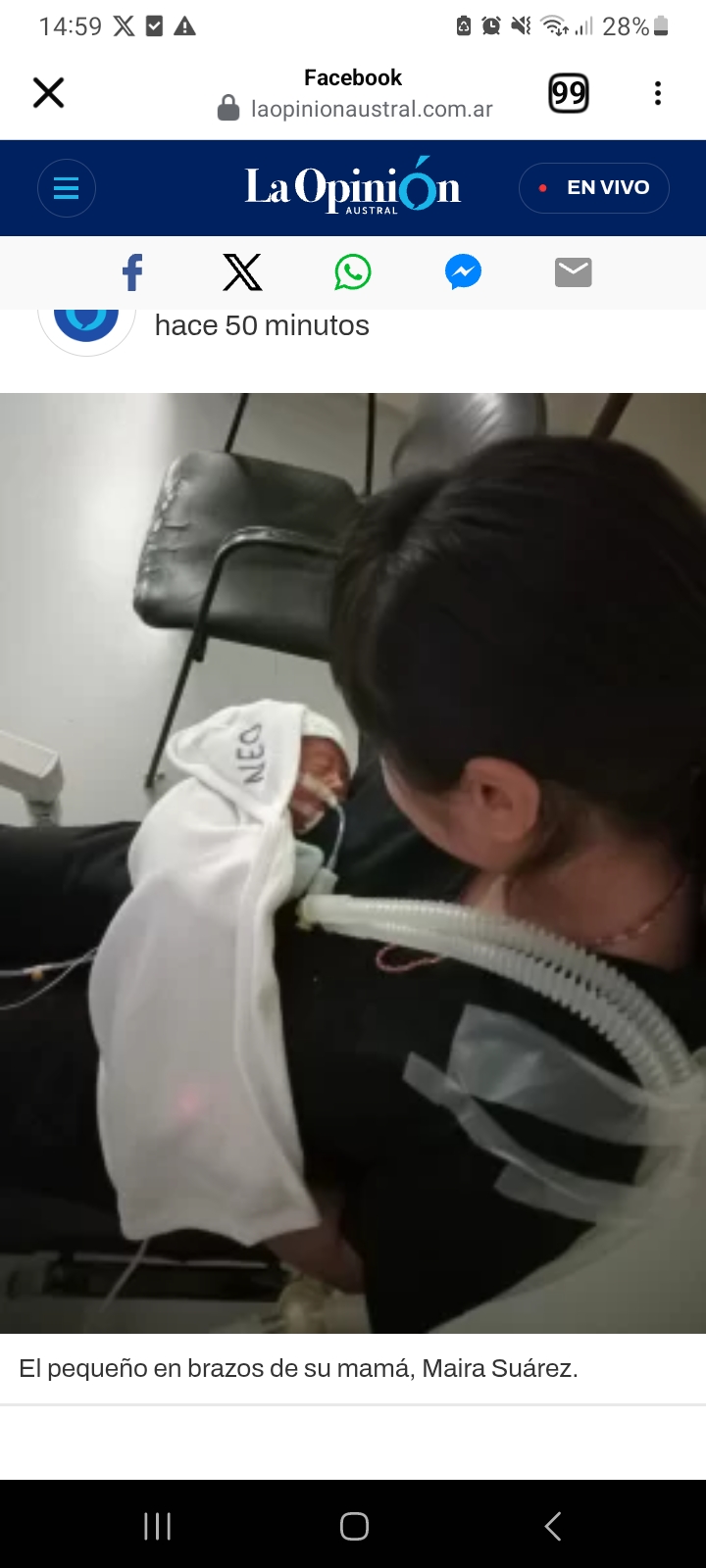 Por otro lado, en diálogo La Opinión Austral, el joven papá relató que el nene “está bien ya se le está cerrando el ductus y ahora le van hacer corticoides para que se desarrollen bien sus pulmones”. Asimismo, una familiar le contó a este medio que Ángel “está pesando un kilo y 500 gramos” y “hace unos días empezó a tomar leche otra vez, le dan 2 cm de leche materna, ya que a veces tolera la leche, pero llega un momento que se la suspenden porque lo hace vomitar.
