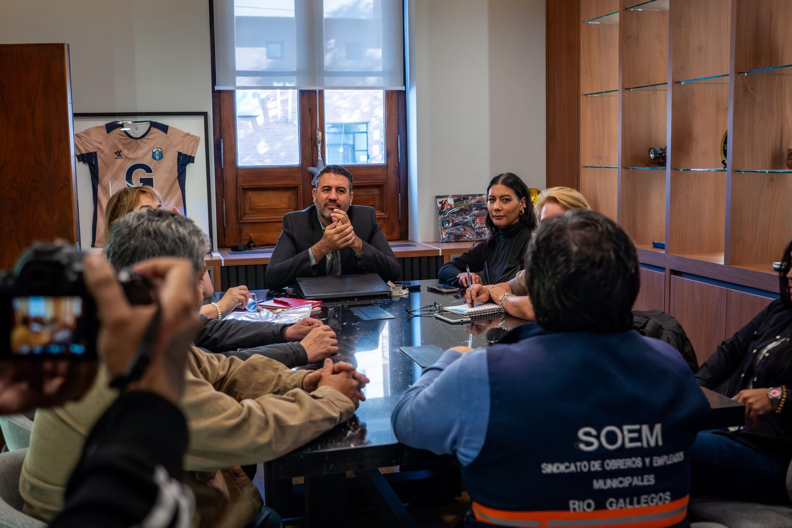 Autoridades del Ejecutivo Municipal y representantes del Sindicato de Obreros y Empleados Municipales (SOEM) de Río Gallegos llevaron adelante esta tarde una nueva reunión paritaria en el edificio central de la Municipalidad.