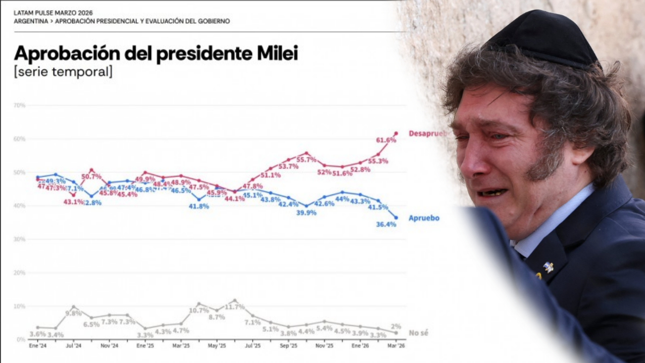 La última encuesta de Atlas Intel arroja resultados dramáticos para el gobierno. La consultora brasileña muestra que la desaprobación de Javier Milei aumentó por tercer mes consecutivo y alcanzó su valor más alto desde el inicio de su gestión con 61,6%.