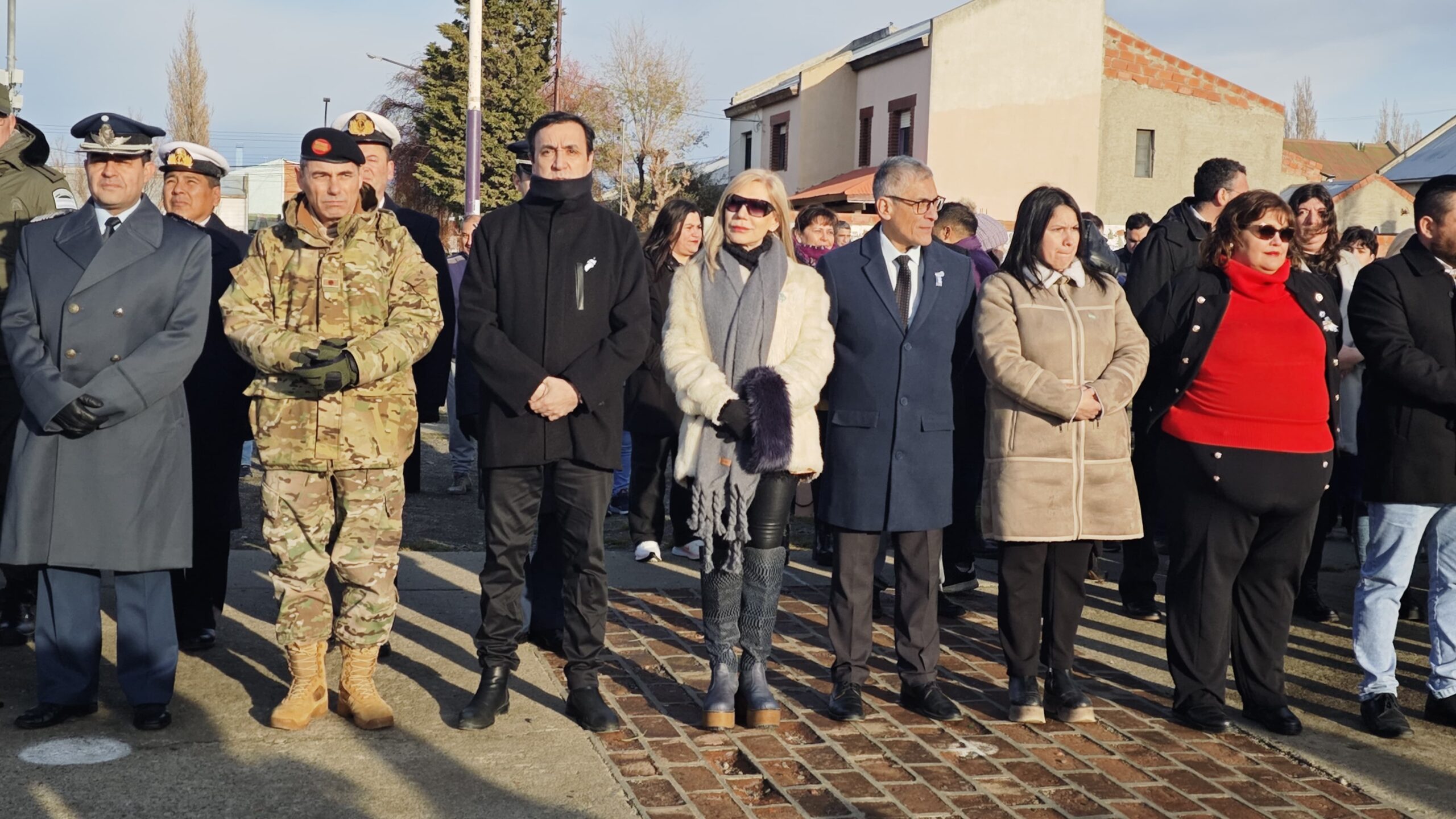 Además, se hicieron presentes autoridades y alumnos con las banderas de ceremonia de 24 instituciones educativas, además de fuerzas armadas y de seguridad, veteranos de Malvinas y vecinos de la comunidad.