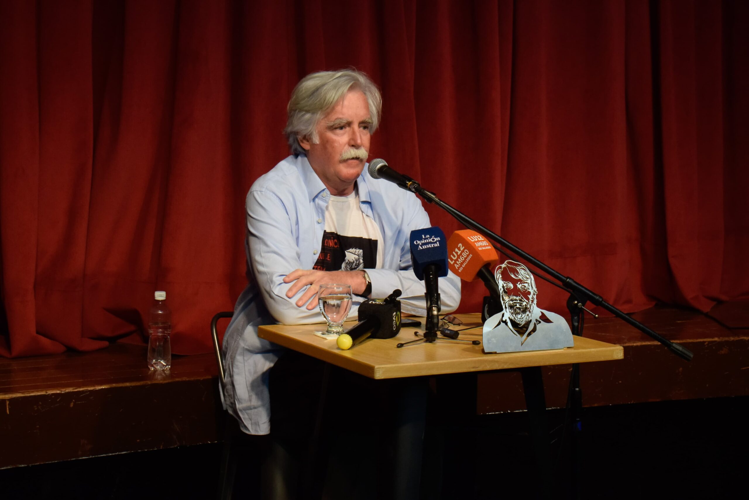 Esta mañana, en las instalaciones del Teatro Municipal “Héctor Marinero”, Esteban Bayer, hijo del escritor y periodista Osvaldo Bayer, brindó una conferencia de prensa en la que se refirió a la destrucción del monumento en homenaje a su padre.