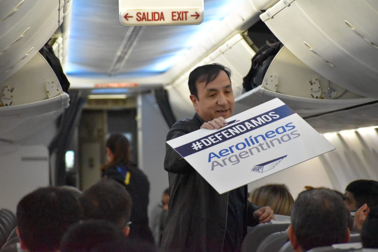 Grasso se subió a un avión de Aerolíneas Argentinas y hubo aplausos para los trabajadores previo al despegue en Río Gallegos.