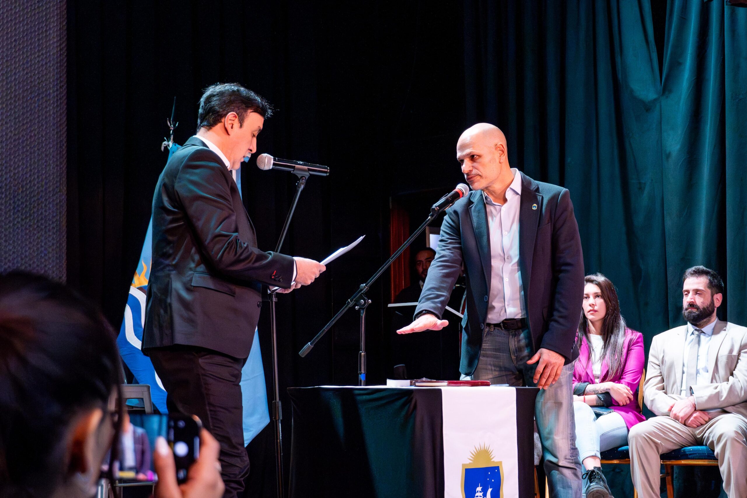 La ceremonia que se realizó en el teatro Héctor Marinero contó con la presencia de Lanesan; integrantes del gabinete municipal; los diputados provinciales Agostina Mora y Eloy Echazú; concejales de Río Gallegos; la concejal de El Chaltén Elizabeth Romanelli; autoridades de la Cámara de Comercio; empresarios; comerciantes; representantes de juntas vecinales y gremiales; autoridades de la Asociación de Empresarios Hoteleros, Gastronómicos y Afines; la decana de la UNPA-UARG, Karina Franciscovic; además de familiares y vecinos.