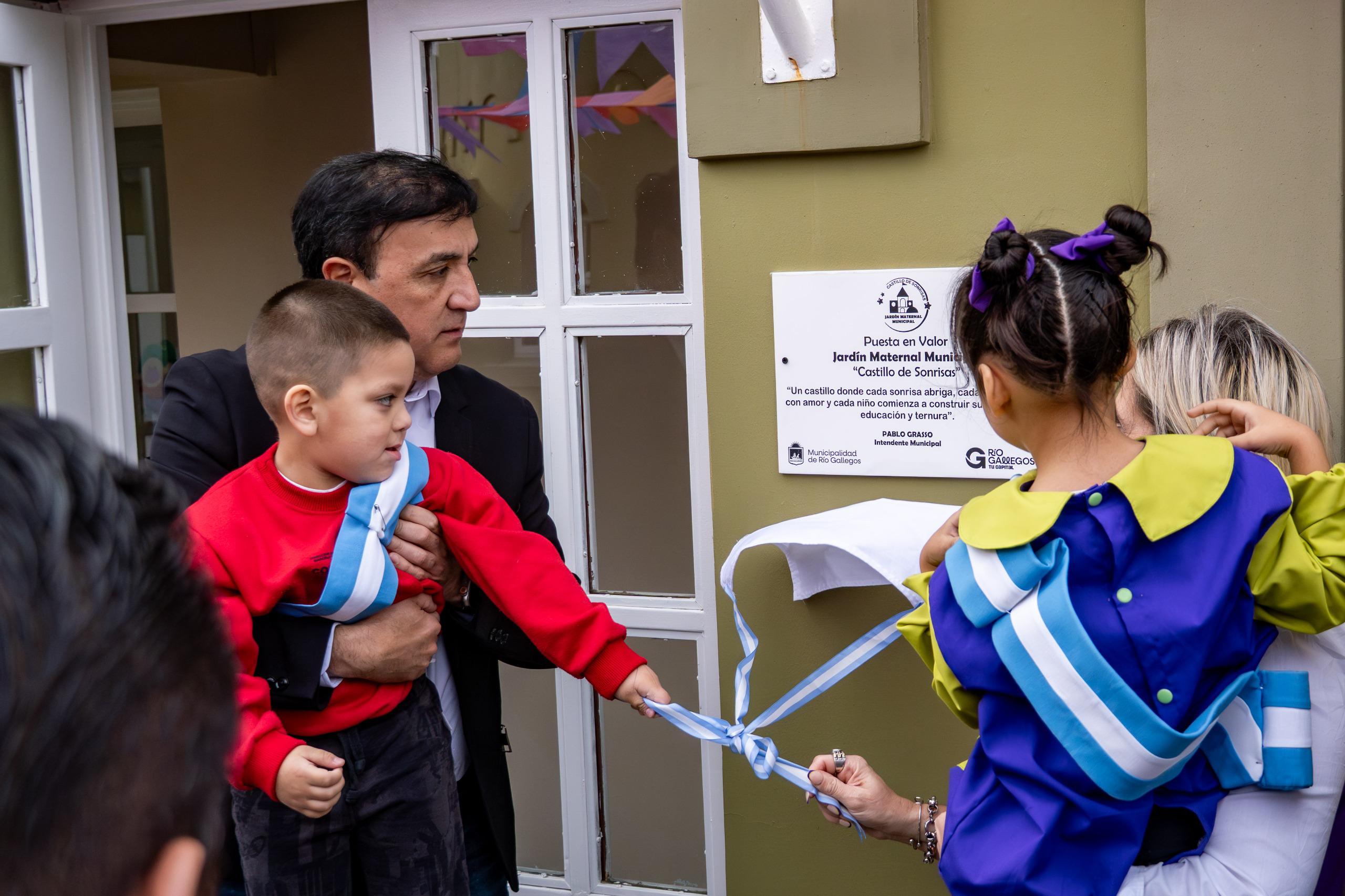Durante el acto, se recordó que el Jardín Maternal comenzó a funcionar en 1999 y luego debió cerrar sus puertas por distintos conflictos. Muchos años después, la gestión del Intendente Pablo Grasso tomó la decisión de recuperar este espacio tan importante y para ello realizó una inversión superior a los 120 millones de pesos para la restauración y puesta en valor del edificio. También se armó un equipo de trabajo de docentes y personal auxiliar municipal destinado exclusivamente al establecimiento.