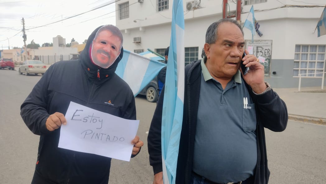 Los trabajadores municipales mantienen un acampe desde el 29 de octubre frente al edificio municipal, exigiendo soluciones a la difícil situación económica que atraviesan. En señal de protesta, hicieron máscaras del Intendente Pablo Carrizo.