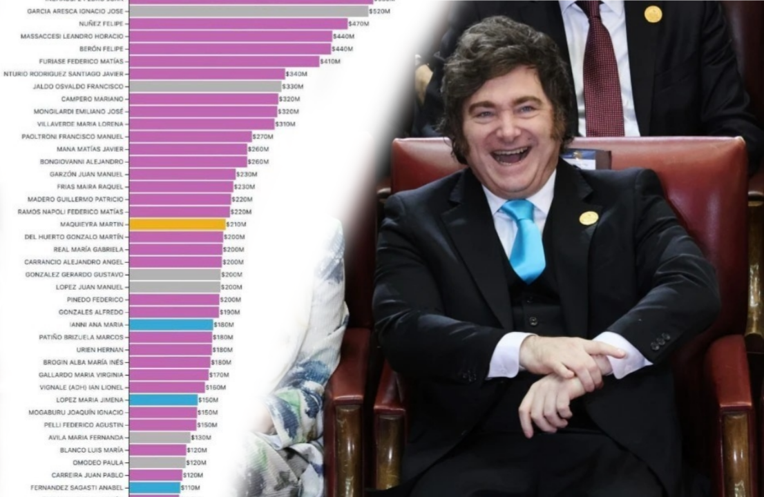 El relevamiento, que toma como referencia cifras de enero de 2026, incluye a diputados, senadores y cargos ejecutivos. Los montos superan en varios casos los 300 millones de pesos, apareciendo beneficiarios con créditos que alcanzan los 530 millones, seguidos por otros que rondan entre 520 y 470 millones. El gráfico muestra una fuerte presencia de un mismo espacio político en los tramos más altos del ranking, aunque también se registran casos de otras fuerzas.