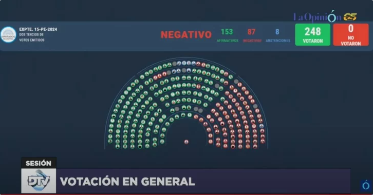 Con esa cantidad de diputados sentados, la oposición requería de 166 votos a favor. Le faltaron 13. Durante la primera aprobación, los dos tercios se habían conseguido con 160.