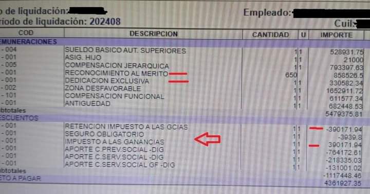 Ya con los descuentos realizados, el sueldo neto quedaría en $4.361.927,35.