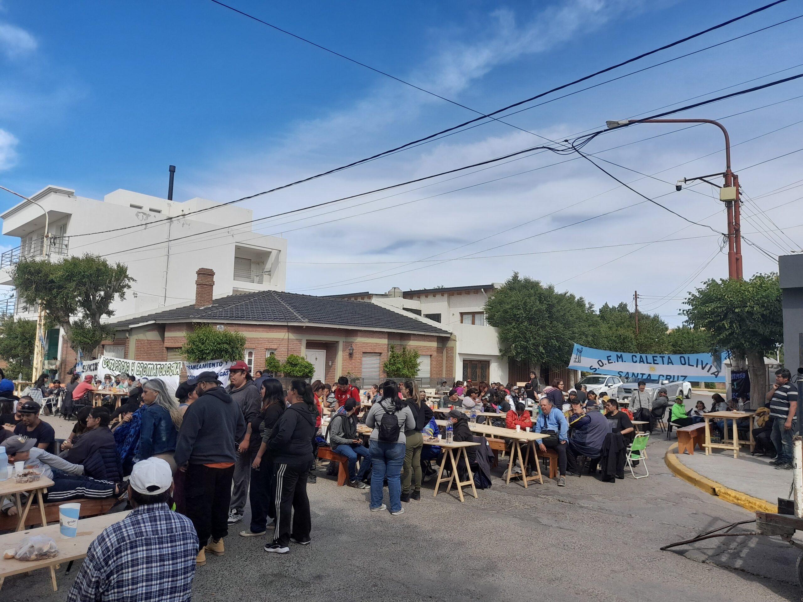 Sin dejar el acampe, en un conflicto que ya se extendió por casi dos meses, la Comisión Directiva del S.O.E.M.C.O y sus afiliados llevaron a cabo el agasajo frente a la Municipalidad de Caleta Olivia.