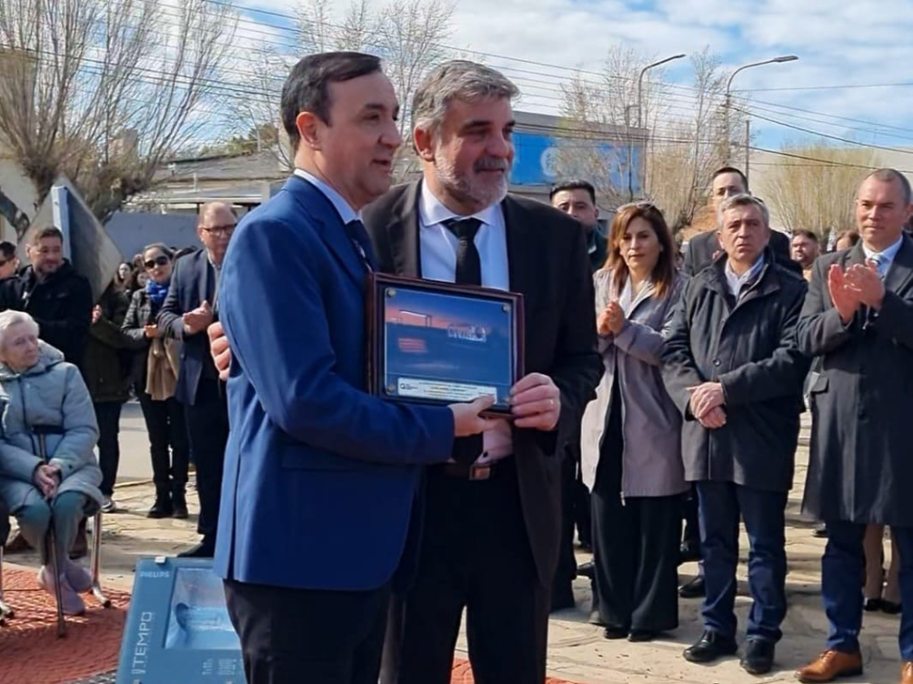 Invitado por el jefe comunal de la localidad, Daniel Gardonio, Pablo Grasso le entregó un presente en representación de los vecinos y vecinas de Río Gallegos. Estuvieron presentes en el acto el gobernador Claudio Vidal, intendentes, funcionarios y legisladores.
