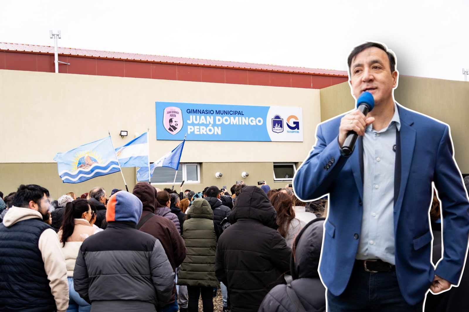 Este miércoles, el intendente Pablo Grasso inauguró el nuevo gimnasio municipal Juan Domingo Perón, que llega para fortalecer la infraestructura deportiva en los barrios y acompañar el crecimiento sostenido de Río Gallegos. Está ubicado en la manzana 255 del barrio Municipal y es un nuevo espacio recreativo, de esparcimiento, que tendrá usos deportivos, sociales y culturales.