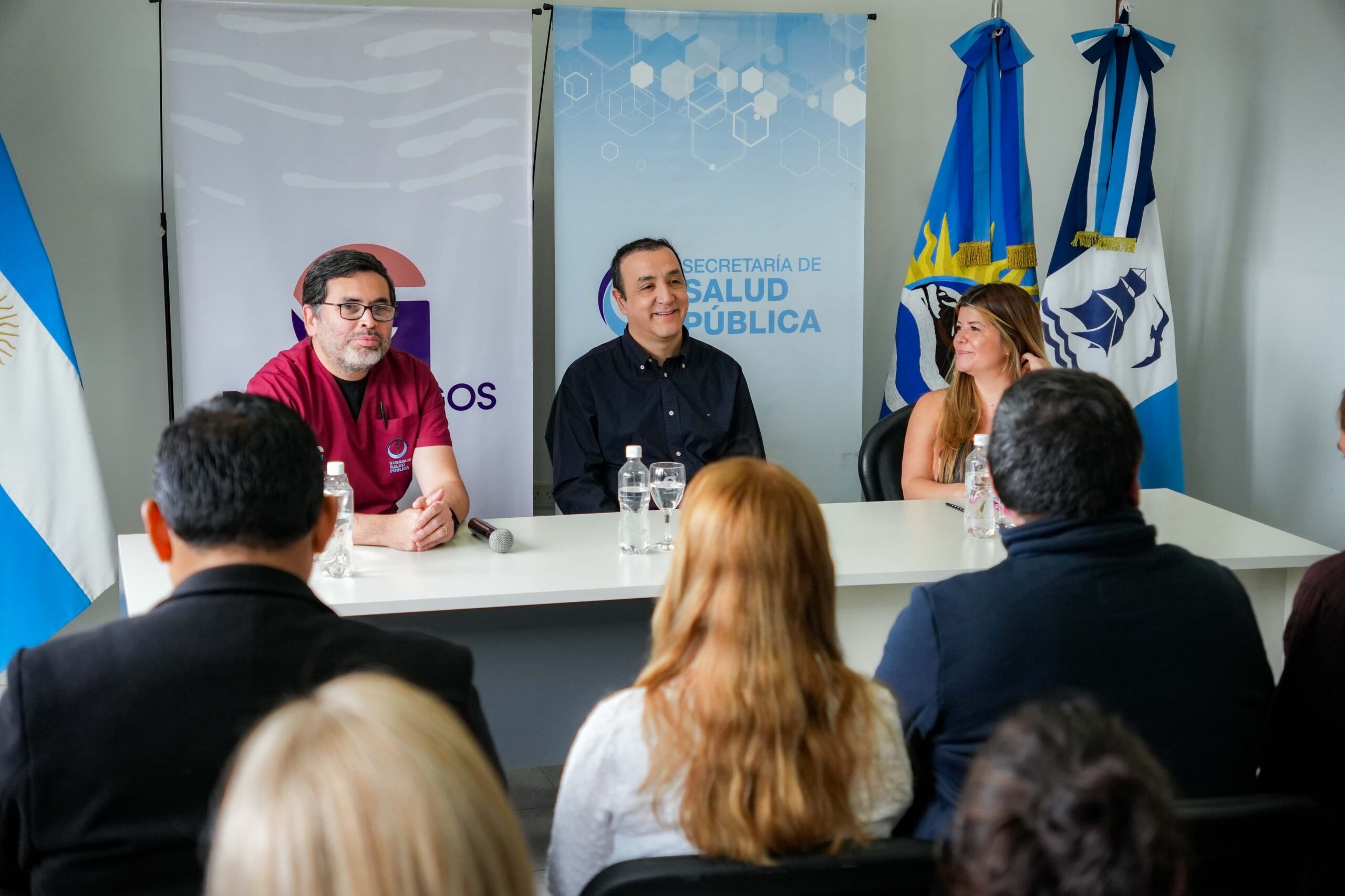 El intendente Pablo Grasso, acompañado por el secretario de Salud Pública, Dr. Quirino Pereira, y la recientemente designada directora de la Dirección de Salud Mental y Adicciones, la psicóloga Cintya González, presentó oficialmente la creación de este nuevo organismo municipal.