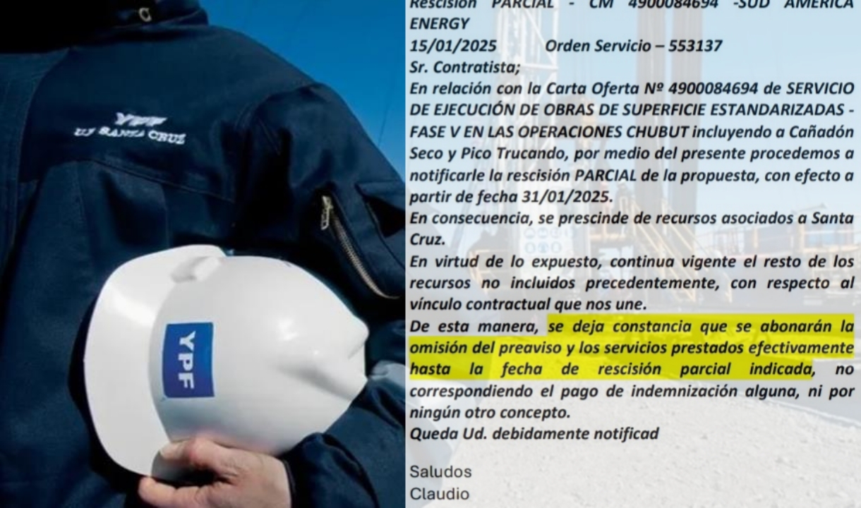 En las últimas horas comenzaron a llegar notificaciones de rescisión de contrato a aquellas empresas que prestaban servicios para YPF.