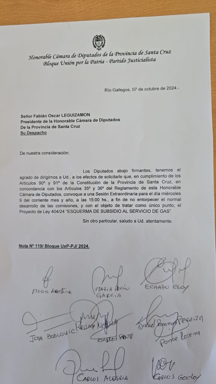 Hoy diputadas y diputados de Unión por la Patria solicitaron una sesión extraordinaria para este miércoles a las 15 hs con el objeto de tratar como único punto el proyecto de Ley de esquema de subsidios a las tarifas de gas. El pedido fue ingresado por Mesa de Entradas y se aguarda la Resolución de Convocatoria en el marco de los Artículos 90 y 91 de la Constitución Provincial como así también los artículos 35 y 36 del Reglamento Interno de la Cámara de Diputados.